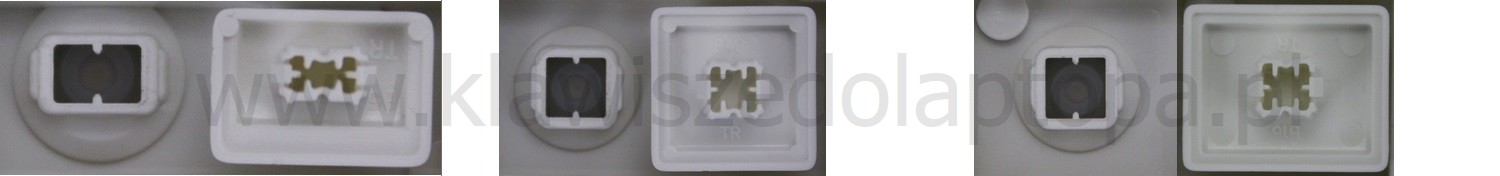 - Om het juiste model te kiezen, vergelijk de lege plek op jouw toetsenbord met de onderstaande foto’s, of verwijder de toets “A” – daaronder zit altijd een middelgrote clip.