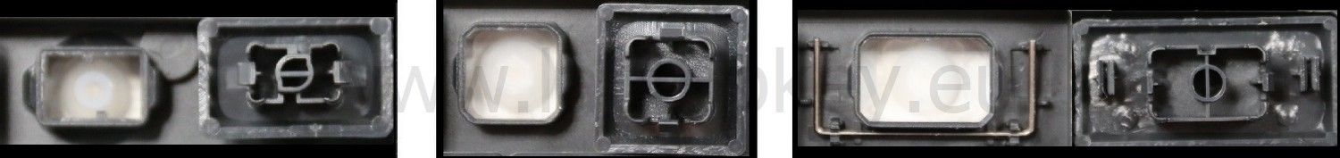 - Om het juiste model te kiezen, vergelijk de lege plek op jouw toetsenbord met de onderstaande foto’s, of verwijder de toets “A” – daaronder zit altijd een middelgrote clip.