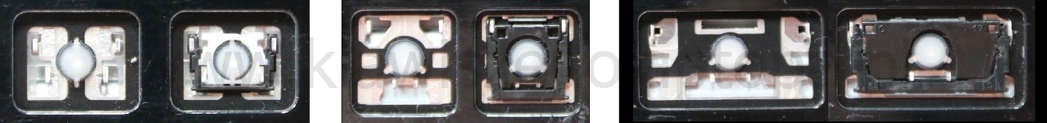 - Bij de meeste toetsenborden die er van buiten identiek uitzien, werden verschillende soorten clips onder de toetsen gebruikt.