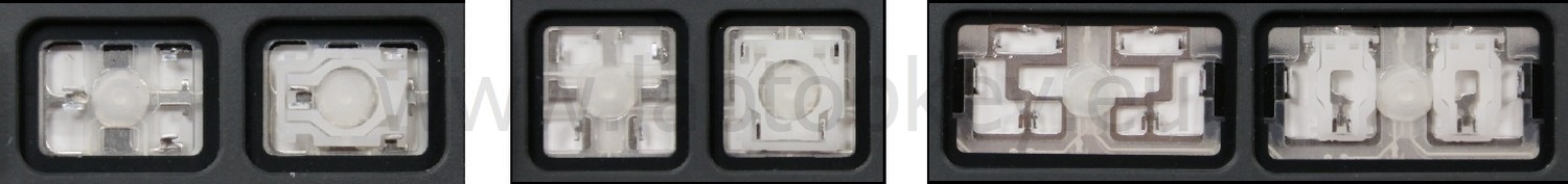 - Bij de meeste toetsenborden die er van buiten identiek uitzien, werden verschillende soorten clips onder de toetsen gebruikt.