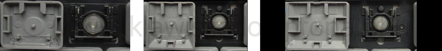 - Bij de meeste toetsenborden die er van buiten identiek uitzien, werden verschillende soorten clips onder de toetsen gebruikt.