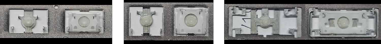 - Om het juiste model te kiezen, vergelijk de lege plek op jouw toetsenbord met de onderstaande foto’s, of verwijder de toets “A” – daaronder zit altijd een middelgrote clip.
