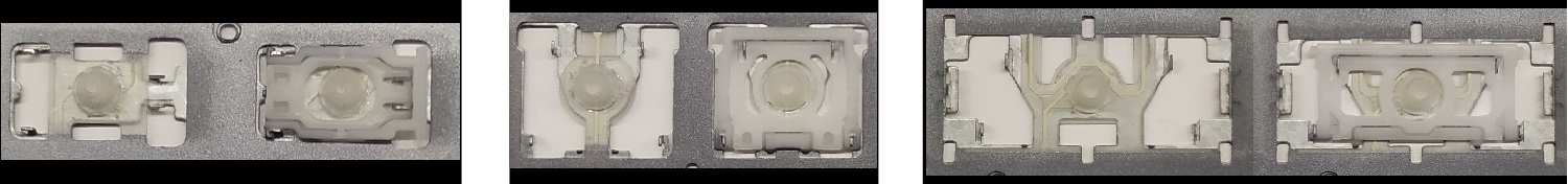 - Bij de meeste toetsenborden die er van buiten identiek uitzien, werden verschillende soorten clips onder de toetsen gebruikt.