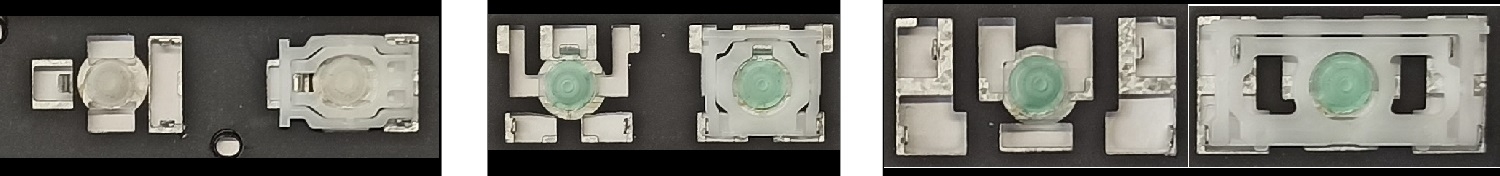 - Om het juiste model te kiezen, vergelijk de lege plek op jouw toetsenbord met de onderstaande foto’s, of verwijder de toets “A” – daaronder zit altijd een middelgrote clip.
