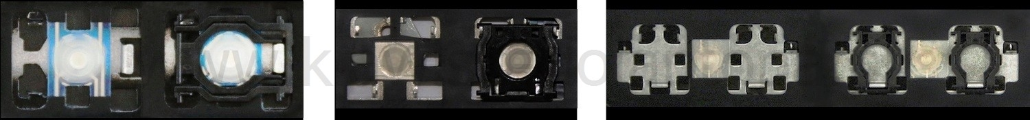 - Bij de meeste toetsenborden die er van buiten identiek uitzien, werden verschillende soorten clips onder de toetsen gebruikt.