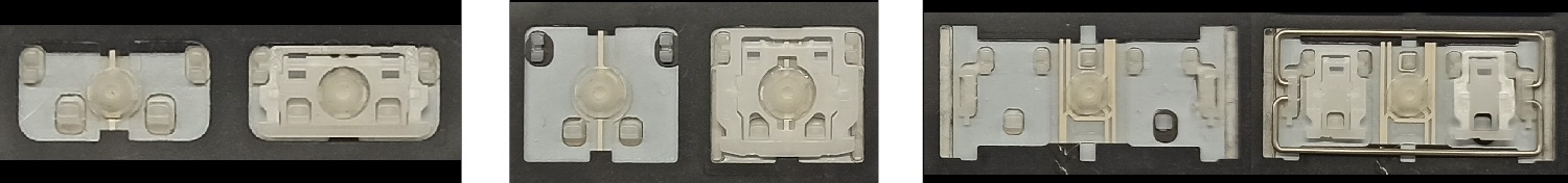 - Bij de meeste toetsenborden die er van buiten identiek uitzien, werden verschillende soorten clips onder de toetsen gebruikt.