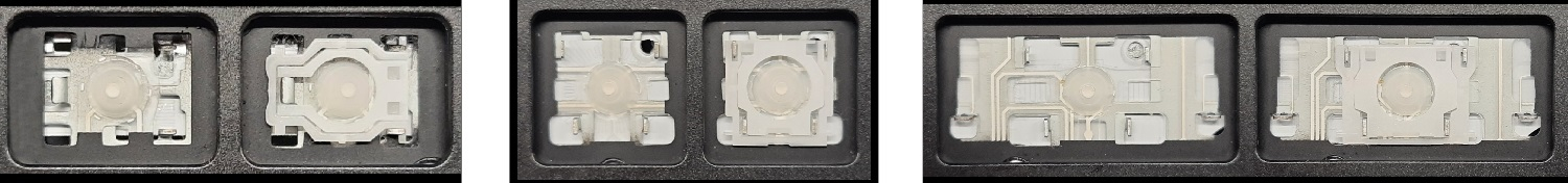 - Bij de meeste toetsenborden die er van buiten identiek uitzien, werden verschillende soorten clips onder de toetsen gebruikt.