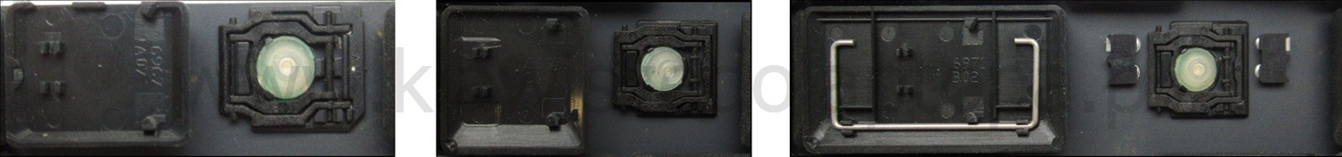 - Bij de meeste toetsenborden die er van buiten identiek uitzien, werden verschillende soorten clips onder de toetsen gebruikt.