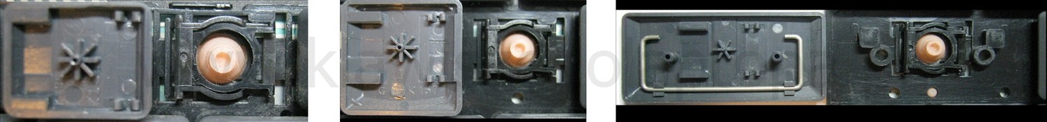 - Bij de meeste toetsenborden die er van buiten identiek uitzien, werden verschillende soorten clips onder de toetsen gebruikt.