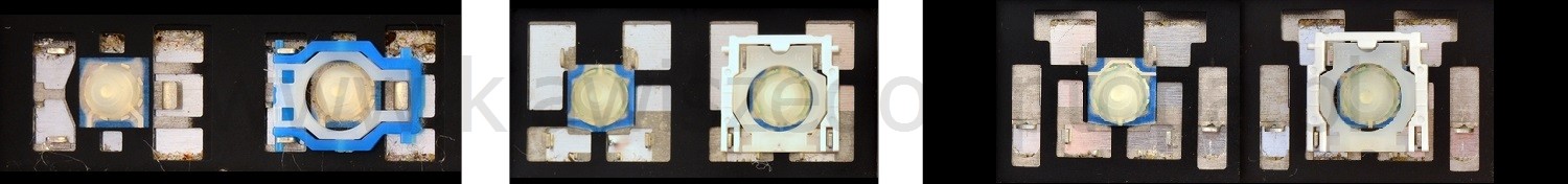 - Bij de meeste toetsenborden die er van buiten identiek uitzien, werden verschillende soorten clips onder de toetsen gebruikt.