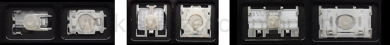 - Bij de meeste toetsenborden die er van buiten identiek uitzien, werden verschillende soorten clips onder de toetsen gebruikt.