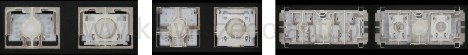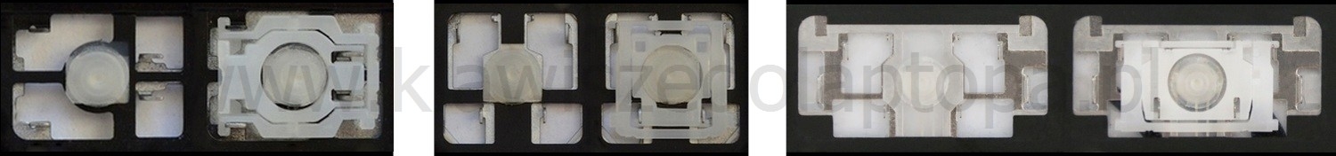 - Bij de meeste toetsenborden die er van buiten identiek uitzien, werden verschillende soorten clips onder de toetsen gebruikt.