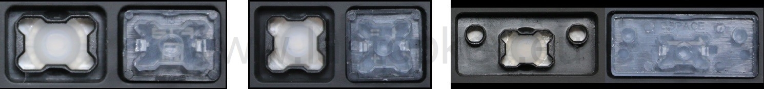- Bij de meeste toetsenborden die er van buiten identiek uitzien, werden verschillende soorten clips onder de toetsen gebruikt.