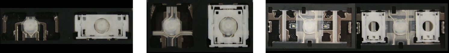- Bij de meeste toetsenborden die er van buiten identiek uitzien, werden verschillende soorten clips onder de toetsen gebruikt.