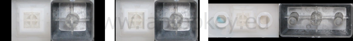 - Om het juiste model te kiezen, vergelijk de lege plek op jouw toetsenbord met de onderstaande foto’s, of verwijder de toets “A” – daaronder zit altijd een middelgrote clip.