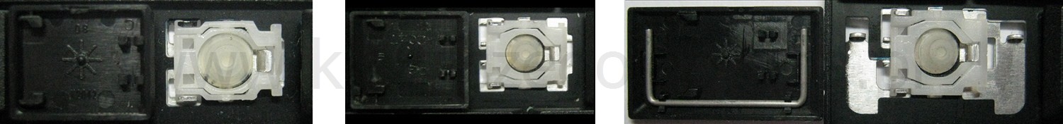 - Bij de meeste toetsenborden die er van buiten identiek uitzien, werden verschillende soorten clips onder de toetsen gebruikt.