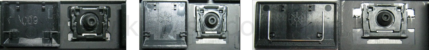 - Om het juiste model te kiezen, vergelijk de lege plek op jouw toetsenbord met de onderstaande foto’s, of verwijder de toets “A” – daaronder zit altijd een middelgrote clip.