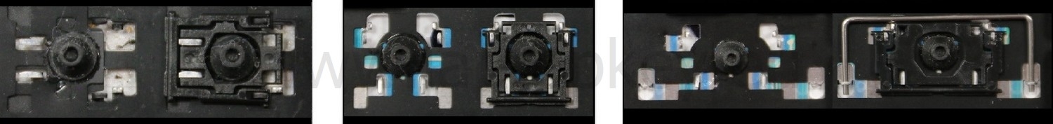 - Bij de meeste toetsenborden die er van buiten identiek uitzien, werden verschillende soorten clips onder de toetsen gebruikt.