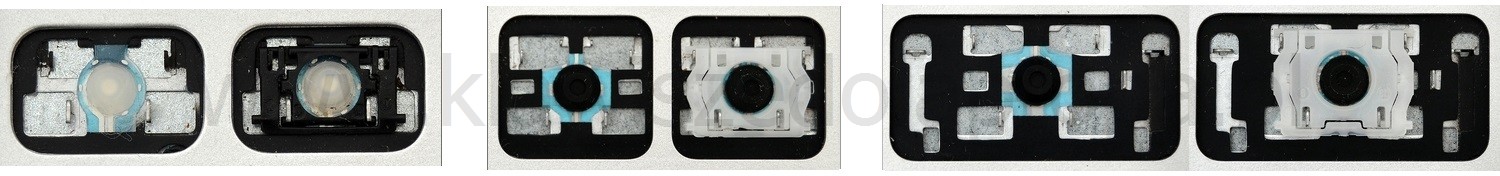 - Om het juiste model te kiezen, vergelijk de lege plek op jouw toetsenbord met de onderstaande foto’s, of verwijder de toets “A” – daaronder zit altijd een middelgrote clip.