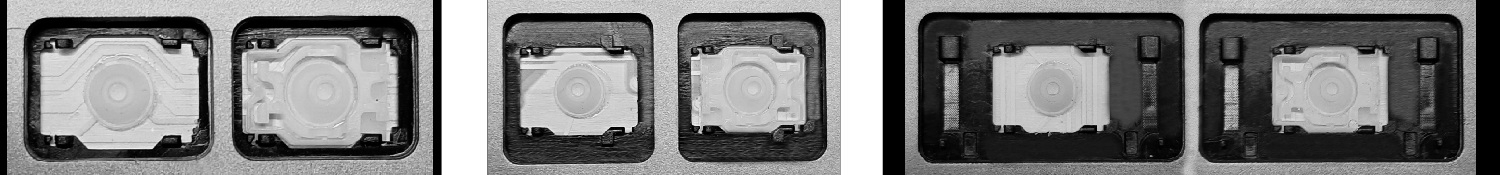 - Om het juiste model te kiezen, vergelijk de lege plek op jouw toetsenbord met de onderstaande foto’s, of verwijder de toets “A” – daaronder zit altijd een middelgrote clip.