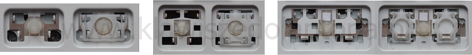 - Bij de meeste toetsenborden die er van buiten identiek uitzien, werden verschillende soorten clips onder de toetsen gebruikt.