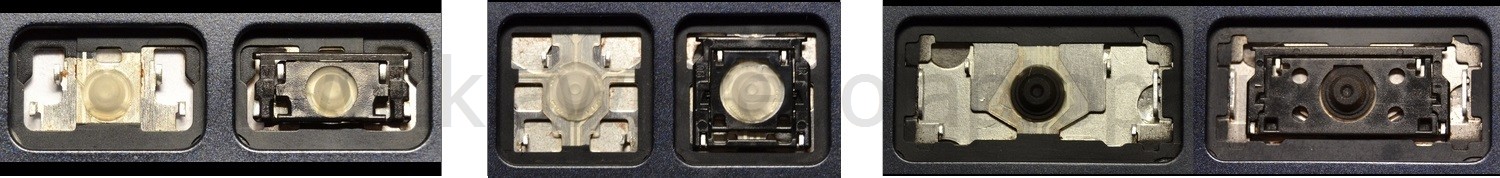 - Bij de meeste toetsenborden die er van buiten identiek uitzien, werden verschillende soorten clips onder de toetsen gebruikt.