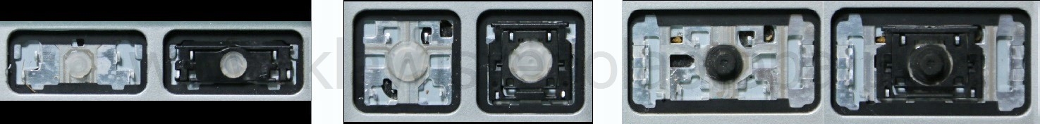 - Bij de meeste toetsenborden die er van buiten identiek uitzien, werden verschillende soorten clips onder de toetsen gebruikt.