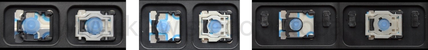 - Bij de meeste toetsenborden die er van buiten identiek uitzien, werden verschillende soorten clips onder de toetsen gebruikt.