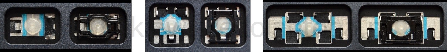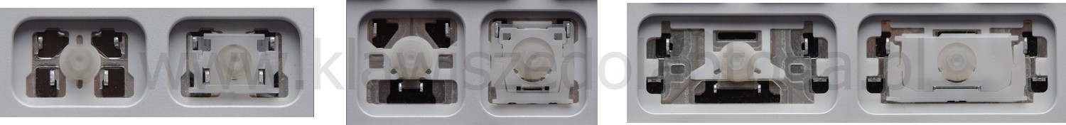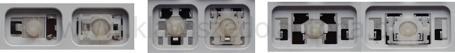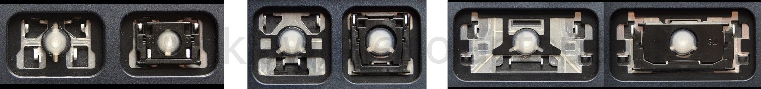 - Bij de meeste toetsenborden die er van buiten identiek uitzien, werden verschillende soorten clips onder de toetsen gebruikt.