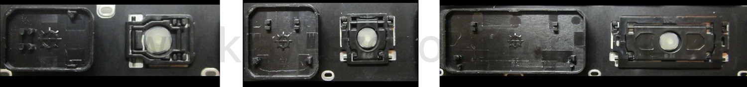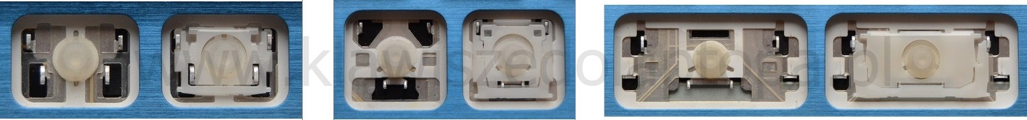 - Om het juiste model te kiezen, vergelijk de lege plek op jouw toetsenbord met de onderstaande foto’s, of verwijder de toets “A” – daaronder zit altijd een middelgrote clip.