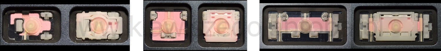 - Bij de meeste toetsenborden die er van buiten identiek uitzien, werden verschillende soorten clips onder de toetsen gebruikt.