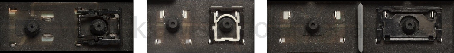 - Bij de meeste toetsenborden die er van buiten identiek uitzien, werden verschillende soorten clips onder de toetsen gebruikt.