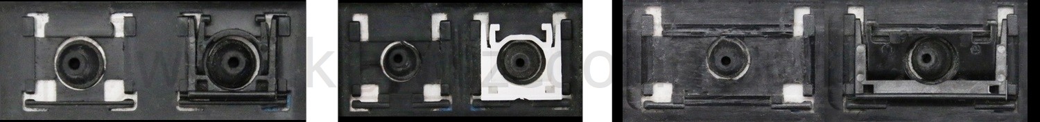 - Bij de meeste toetsenborden die er van buiten identiek uitzien, werden verschillende soorten clips onder de toetsen gebruikt.