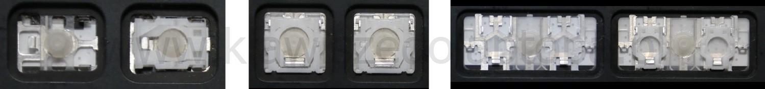 - Bij de meeste toetsenborden die er van buiten identiek uitzien, werden verschillende soorten clips onder de toetsen gebruikt.