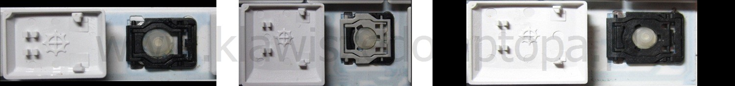 - Om het juiste model te kiezen, vergelijk de lege plek op jouw toetsenbord met de onderstaande foto’s, of verwijder de toets “A” – daaronder zit altijd een middelgrote clip.