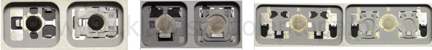 - Om het juiste model te kiezen, vergelijk de lege plek op jouw toetsenbord met de onderstaande foto’s, of verwijder de toets “A” – daaronder zit altijd een middelgrote clip.