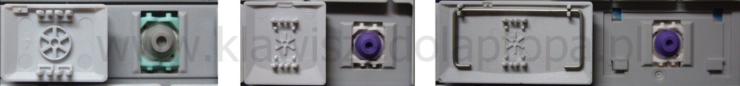 - Om het juiste model te kiezen, vergelijk de lege plek op jouw toetsenbord met de onderstaande foto’s, of verwijder de toets “A” – daaronder zit altijd een middelgrote clip.