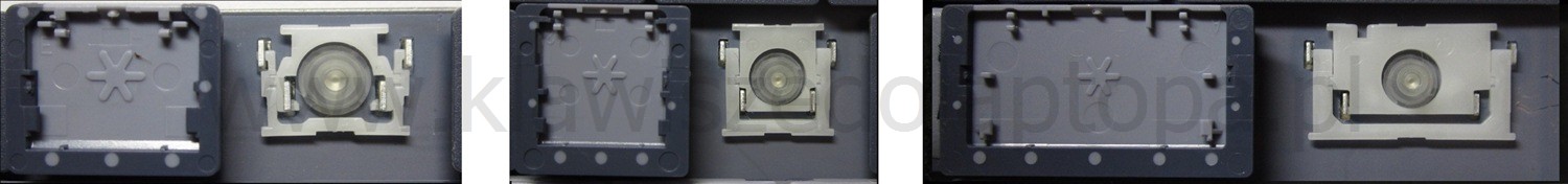 - Om het juiste model te kiezen, vergelijk de lege plek op jouw toetsenbord met de onderstaande foto’s, of verwijder de toets “A” – daaronder zit altijd een middelgrote clip.