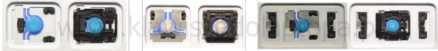 - Om het juiste model te kiezen, vergelijk de lege plek op jouw toetsenbord met de onderstaande foto’s, of verwijder de toets “A” – daaronder zit altijd een middelgrote clip.