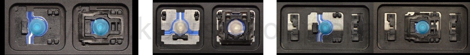 - Bij de meeste toetsenborden die er van buiten identiek uitzien, werden verschillende soorten clips onder de toetsen gebruikt.