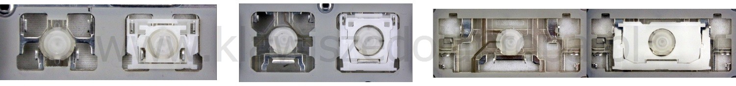 - Bij de meeste toetsenborden die er van buiten identiek uitzien, werden verschillende soorten clips onder de toetsen gebruikt.