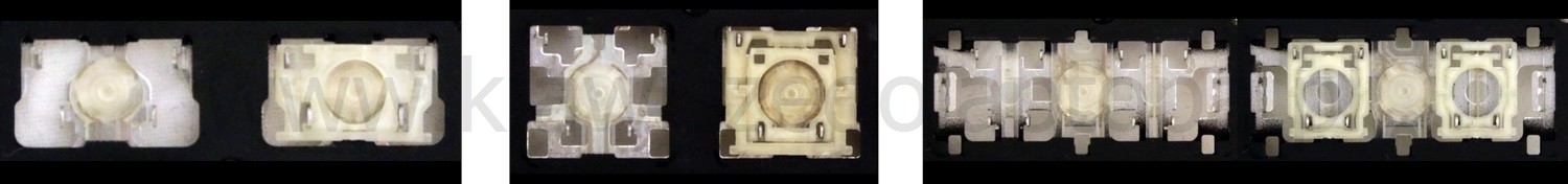 - Bij de meeste toetsenborden die er van buiten identiek uitzien, werden verschillende soorten clips onder de toetsen gebruikt.