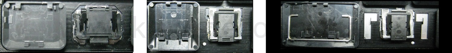 - Om het juiste model te kiezen, vergelijk de lege plek op jouw toetsenbord met de onderstaande foto’s, of verwijder de toets “A” – daaronder zit altijd een middelgrote clip.