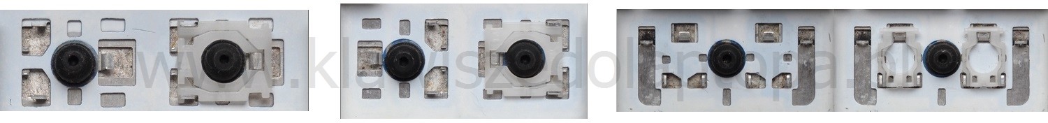 - Om het juiste model te kiezen, vergelijk de lege plek op jouw toetsenbord met de onderstaande foto’s, of verwijder de toets “A” – daaronder zit altijd een middelgrote clip.