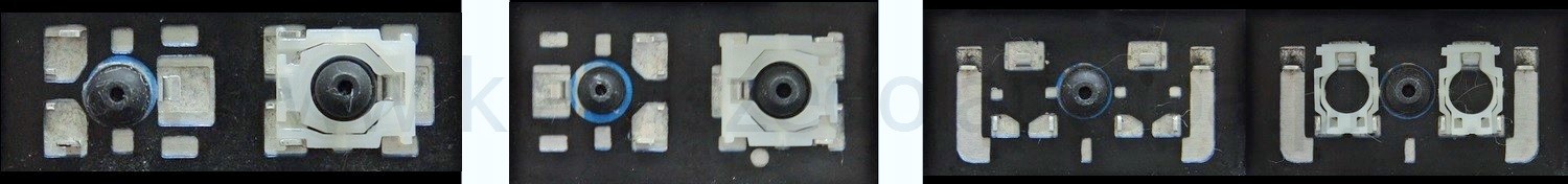 - Bij de meeste toetsenborden die er van buiten identiek uitzien, werden verschillende soorten clips onder de toetsen gebruikt.