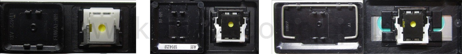 - Bij de meeste toetsenborden die er van buiten identiek uitzien, werden verschillende soorten clips onder de toetsen gebruikt.