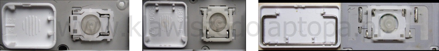 - Om het juiste model te kiezen, vergelijk de lege plek op jouw toetsenbord met de onderstaande foto’s, of verwijder de toets “A” – daaronder zit altijd een middelgrote clip.