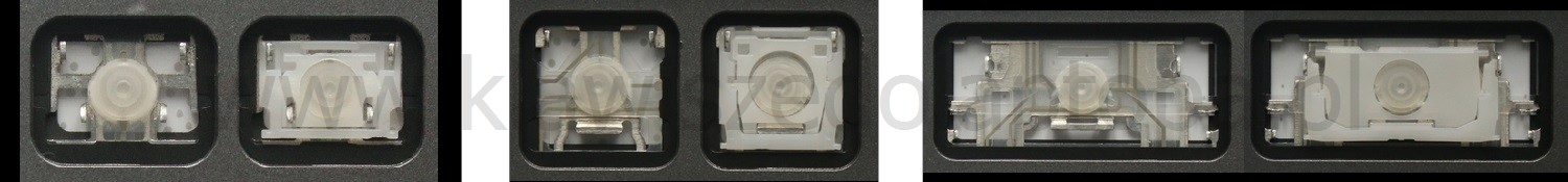 - Bij de meeste toetsenborden die er van buiten identiek uitzien, werden verschillende soorten clips onder de toetsen gebruikt.
