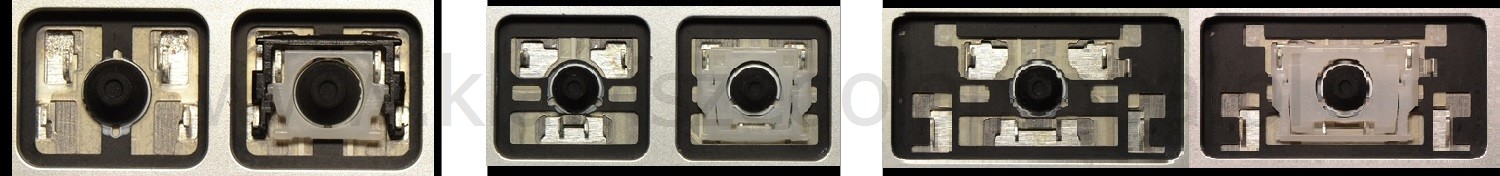 - Om het juiste model te kiezen, vergelijk de lege plek op jouw toetsenbord met de onderstaande foto’s, of verwijder de toets “A” – daaronder zit altijd een middelgrote clip.
