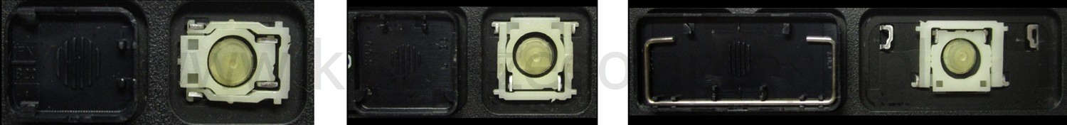 - Om het juiste model te kiezen, vergelijk de lege plek op jouw toetsenbord met de onderstaande foto’s, of verwijder de toets “A” – daaronder zit altijd een middelgrote clip.